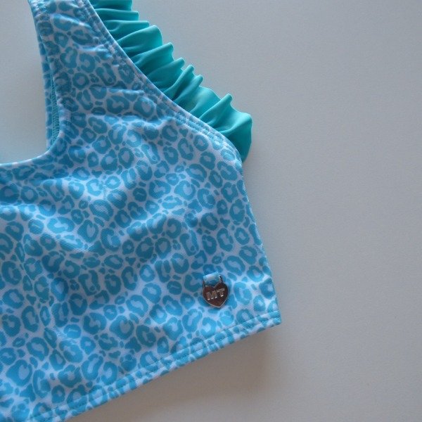 ♥ Top larguito con volado en la sisa Super cómodo, para jugar y nadar tranquilas + vedetina clásica tiro medio del mismo estampado.