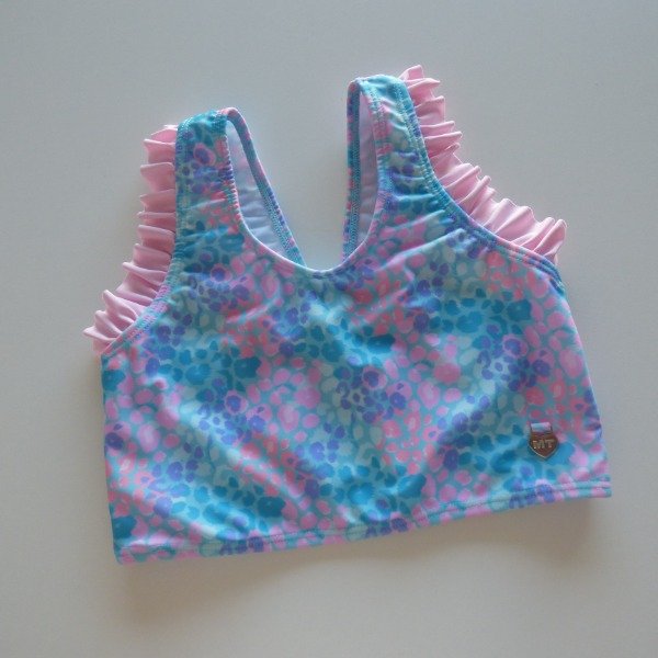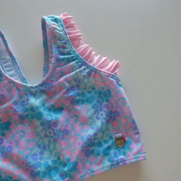 ♥ Top larguito con volado en la sisa Super cómodo, para jugar y nadar tranquilas + vedetina clásica tiro medio del mismo estampado.
