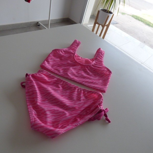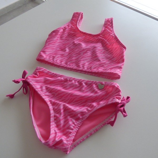 ♥ Top larguito super cómodo, para jugar y nadar tranquilas + vedetina con tiritas del mismo estampado.