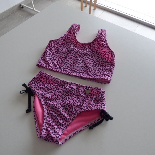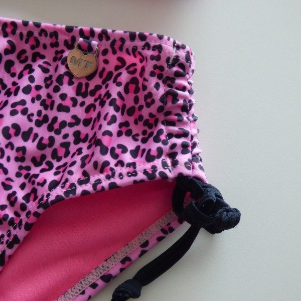 ♥ Top larguito super cómodo, para jugar y nadar tranquilas + vedetina con tiritas del mismo estampado.